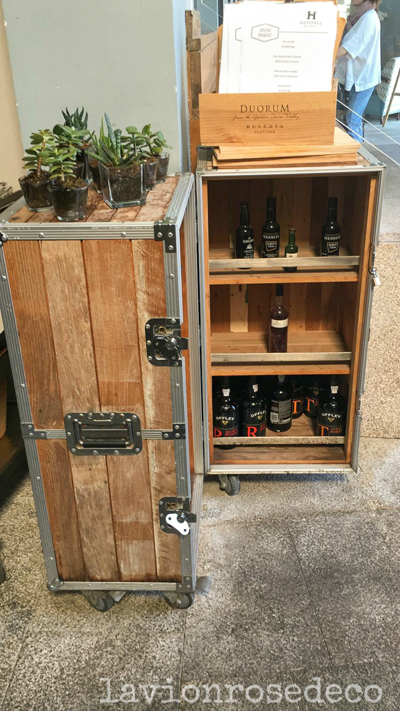 Geralmente só nos lembramos de usar um baú na horizontal. Mas não, ele pode também verticalizar, ganhar rodas na lateral, prateleiras no interior, e está feito um bar ou garrafeira: