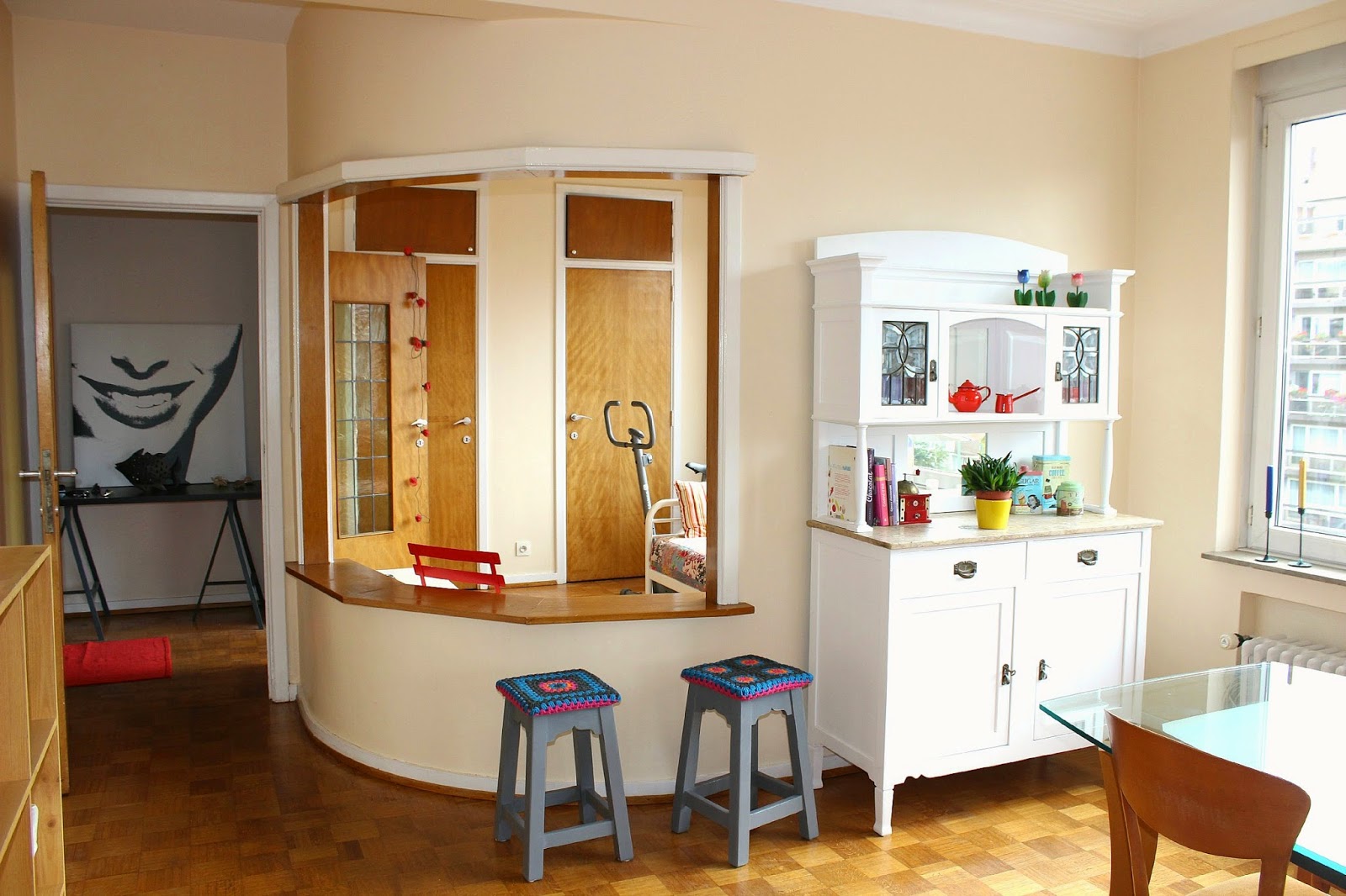 Val, ficou lindo e muito aconchegante. Adorei os móveis renovados, o louceiro , o criado. E o sofá quem diria que foi abandonado. O apartamento tem lindas vistas e é super luminoso. Eu acho Bruxelas uma cidade escura, mas nesse imóvel a luz inunda cada canto. Com certeza terão uma feliz morada as meninas. Parabéns.