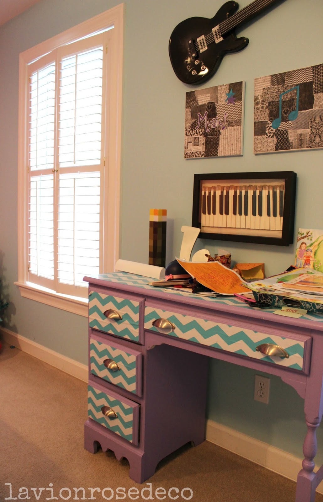No quarto da Lucie, a filha mais velha, a música é o tema!