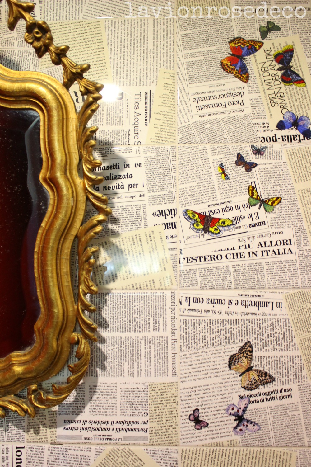Menina, que raios de azulejos com estampa de jornal e borboletas são esses?
