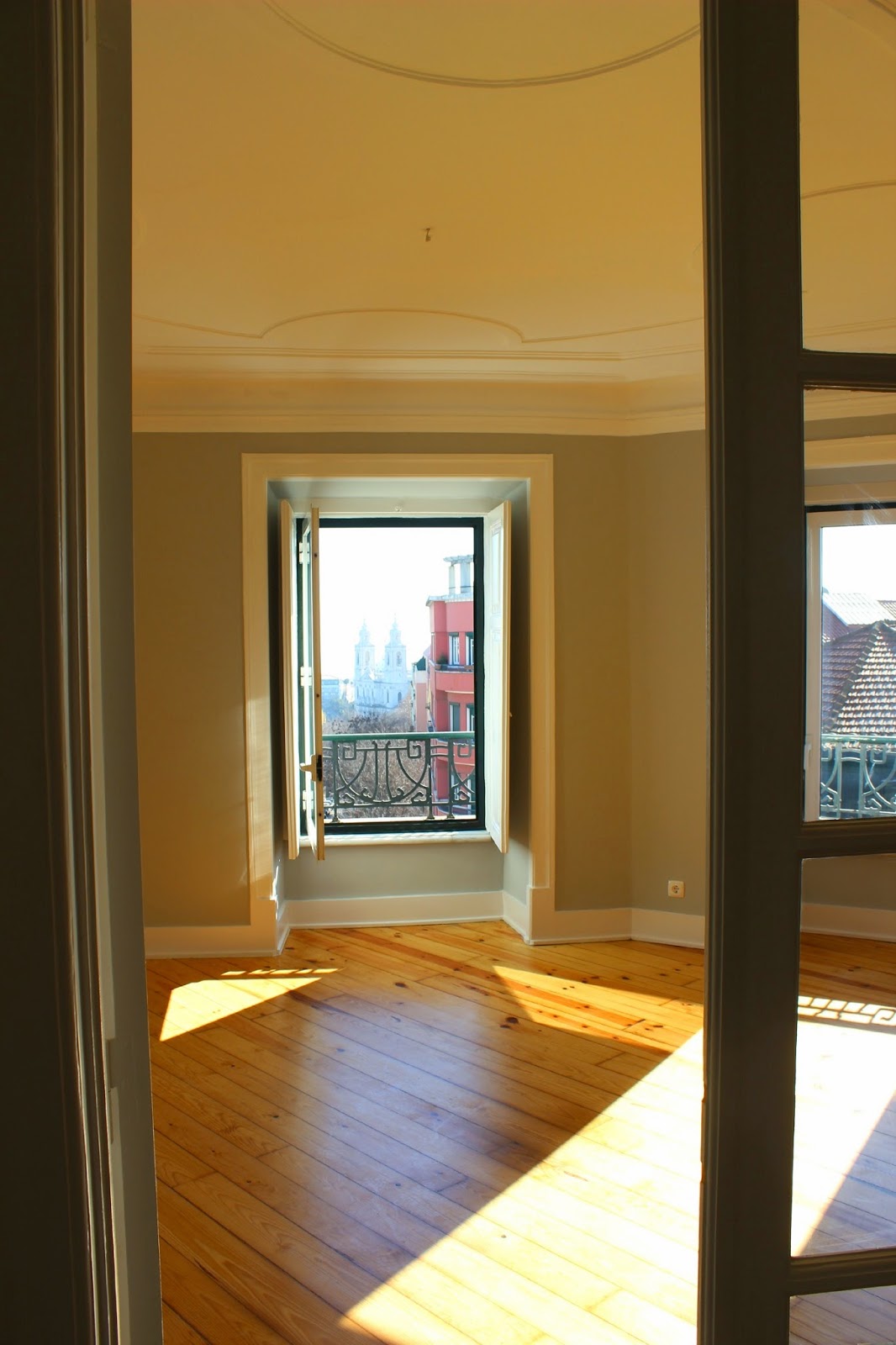 Sempre hesito muito antes de publicar no blog os trabalhos que faço profissionalmente. Mas depois que os mostro, a onda de curiosidade em relação a conservação e restauro e a chuva de emails com perguntas sobre estes assuntos são tão grandes por parte de quem me lê, que acabo por me convencer que sim, que quem passa por aqui, tem um genuíno interesse por reabilitação de casas usadas pelas pessoas e pelo tempo. Esta intervenção foi especial, não tanto pelo apartamento em si, (sim, ele é lindo, mas estou habituada a isso, 99,9 % do meu trabalho como arquiteta é em remodelações) mas pelo que pude descobrir depois que levantei o linólio que cobria o piso da cozinha, raspei a tinta do interior da chaminé ou desmontei a parede que dividia duas salas. Por baixo do linólio, revelou-se um chão de madeira interrompido aqui e ali por mosaicos hidráulicos, num patchwork surpreendente. Sob a camada de tinta, apareceram delicados azulejos antigos. E quando descasquei cuidadosamente a parede, surgiu uma estrutura linda, de madeira, como se de um biombo se tratasse. Belas surpresas, que me levam a pensar que é um privilégio trabalhar nesta área, e uma responsabilidade acrescida deixar à vista uma beleza nua e crua, com marcas e defeitos. Sem disfarces.